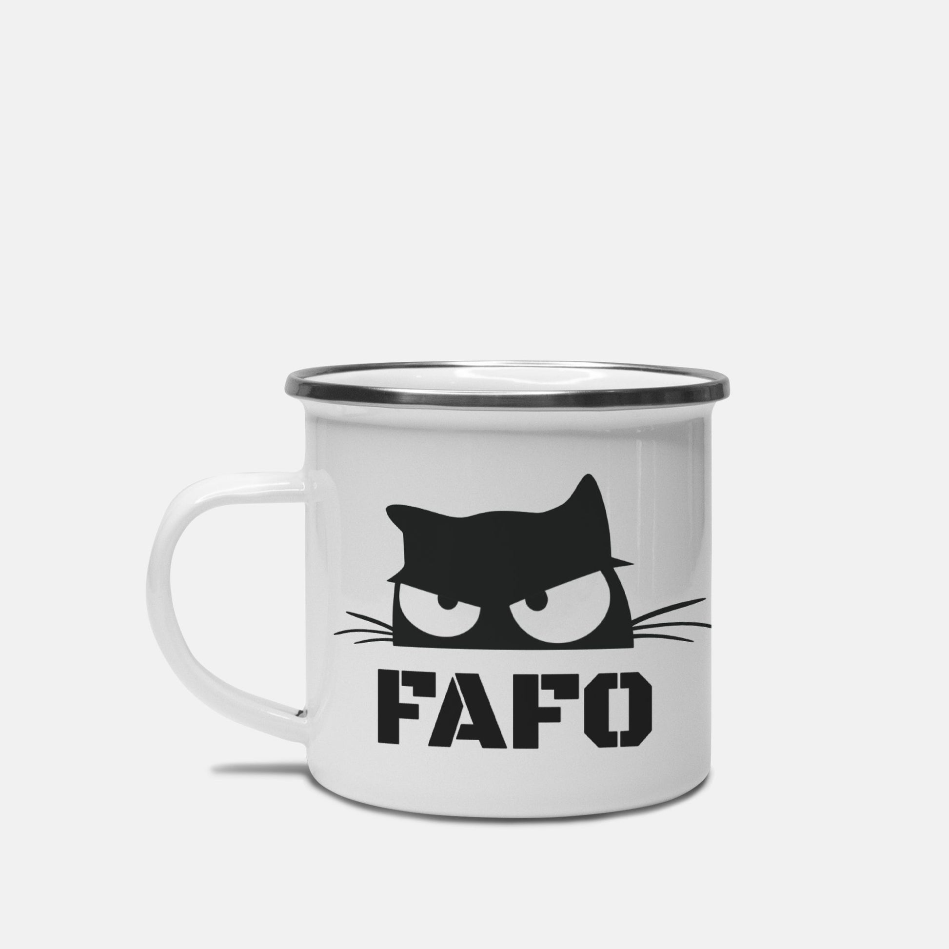 Some mugs are friendly. This one… not so much. Say hello to our FAFO Sarcastic Cat Camp Mug, the only mug that stares back at you with the same attitude you wake up with. Featuring the iconic "FAFO" print under a gloriously unimpressed cat face, this 10oz enamel mug doesn’t sugarcoat, doesn’t flatter, and definitely doesn’t care if you can't handle your coffee black.