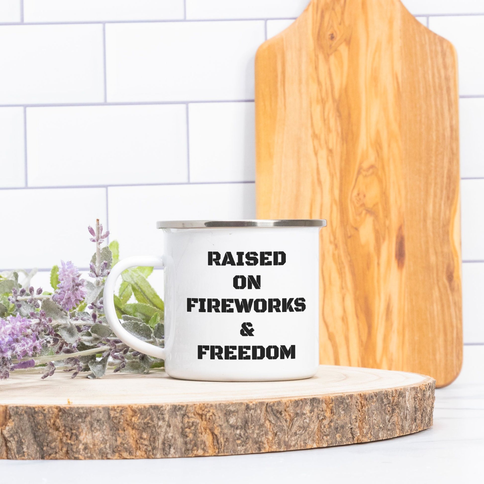 Start your day with a bang (and a brew) with our "Raised on Fireworks & Freedom" 10oz Camp Mug. This isn't just any mug, it's a declaration for those who live life with a spark and a healthy dose of independence. Crafted with a durable enamel coating, this camp mug is ready for whatever your day throws at it, from the quiet calm of a sunrise coffee to the rowdy cheers of a campfire gathering.